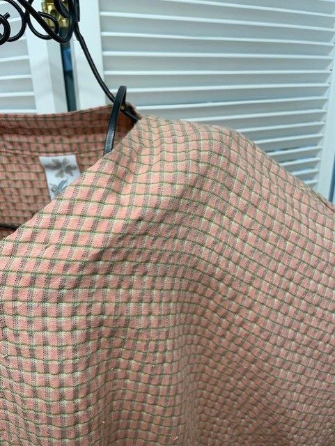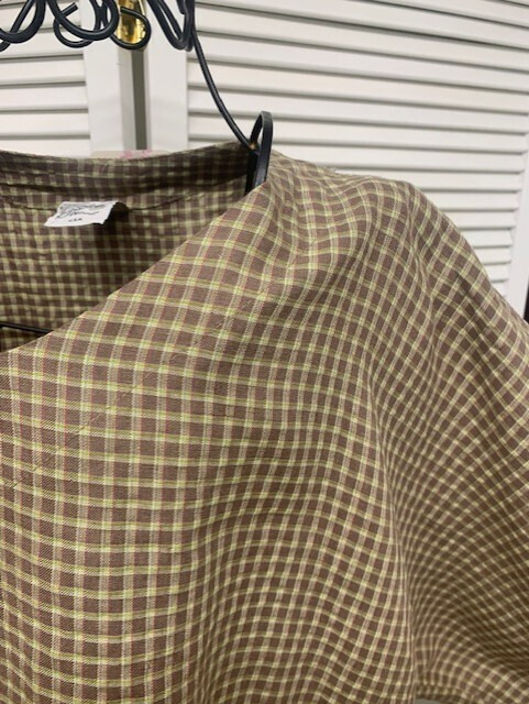 65% Linen 35% Polyester, 3/4 Sleeve kimono style pull over top in Crinkle Checkered