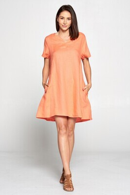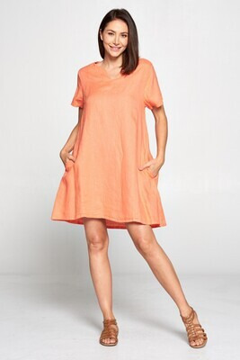 100% Light Weight Linen, VNeck Short Dress