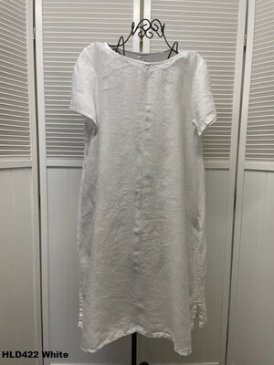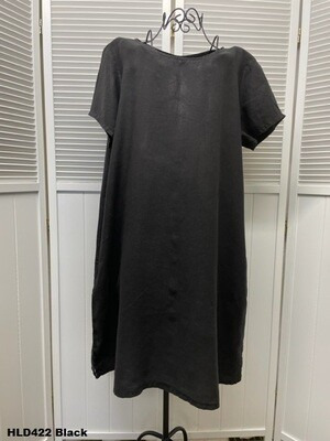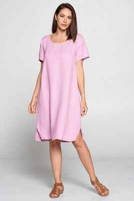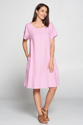 100% Light Weight Linen, Short Sleeve Round Neck Basic Dress