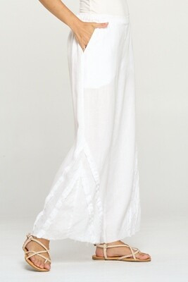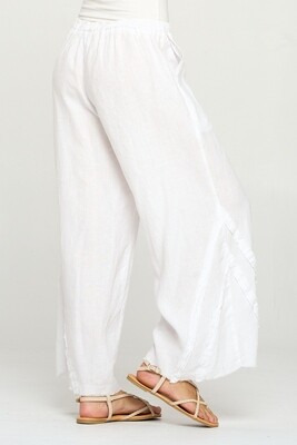 100% Linen, Wide Leg Pants with Frayed Details
