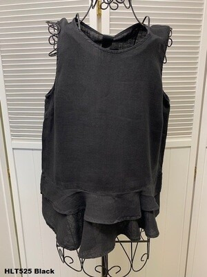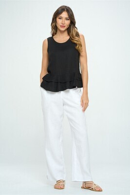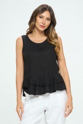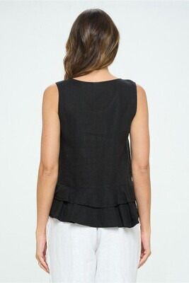 100% Linen Medium Weight Crew Neck Tank Top with Ruffle