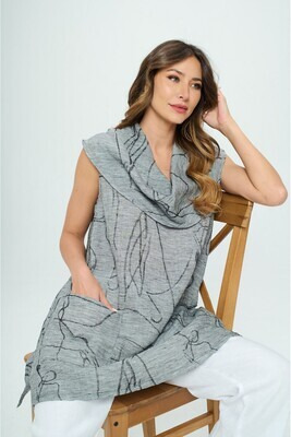 100% Light Weight Linen, Sleeveless cowl neck tunic with pockets