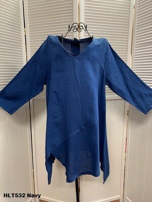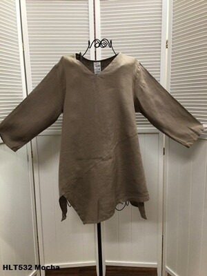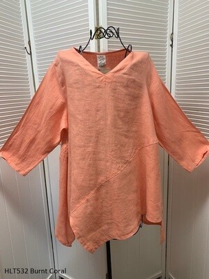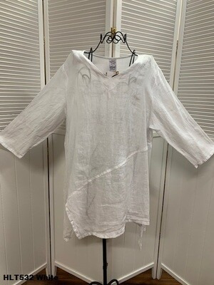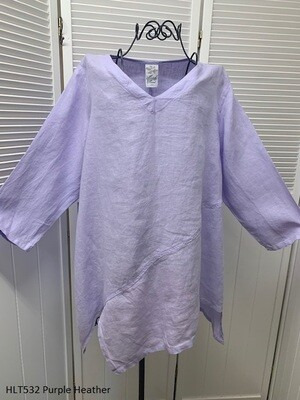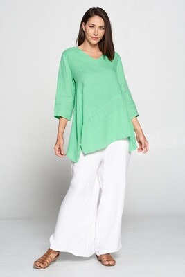 100% Light Weight Linen, V-Neck Pullover Top with Uneven Bottom Detail