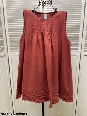 100% Light Weight Linen, Sleeveles Pleated Tank