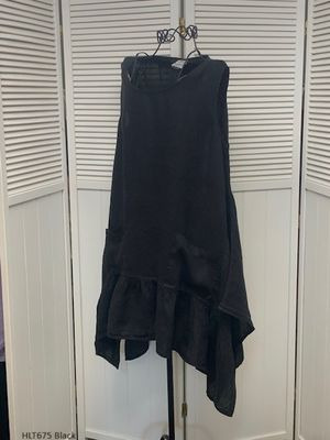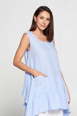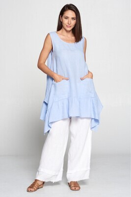 100% Linen, Round Neck Flounce Top with Ruffle and 2 Pockets