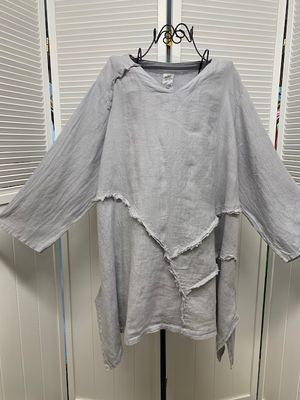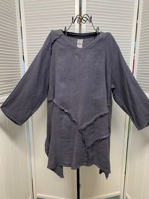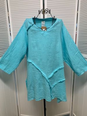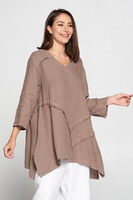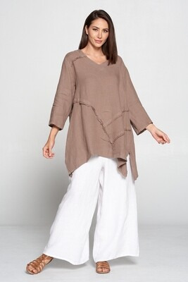 100% Light Weight Linen, 3/4 Sleeve VNeck Pull Over Tunic Top with Raw Edge Details