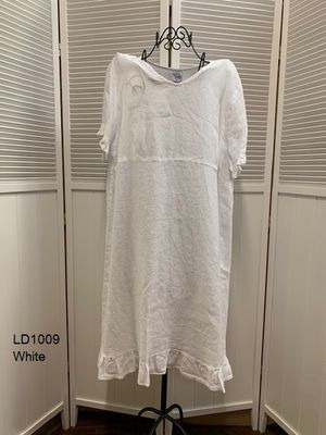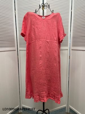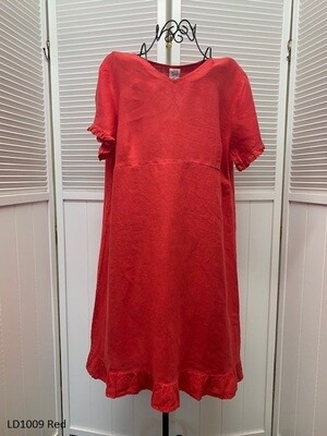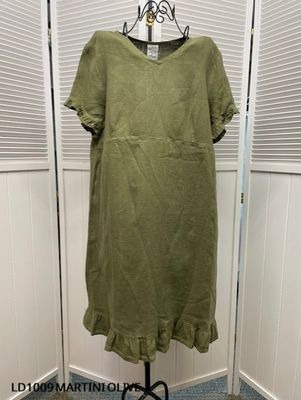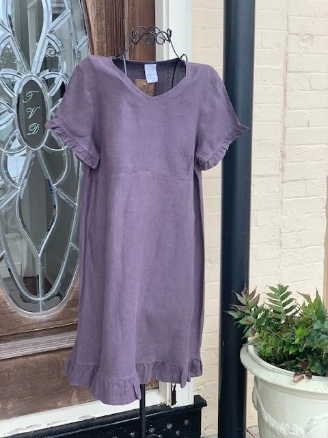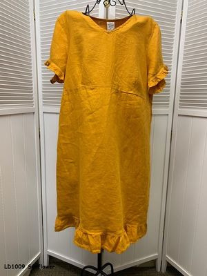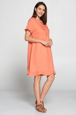 100% Linen, V-Neck Dress with Ruffles