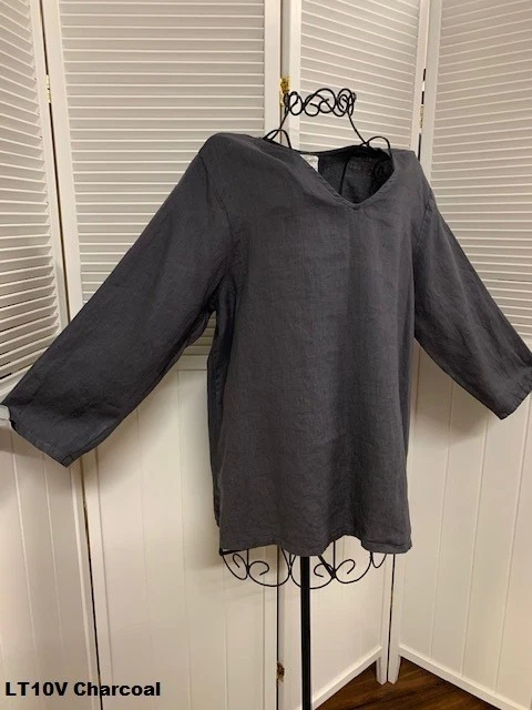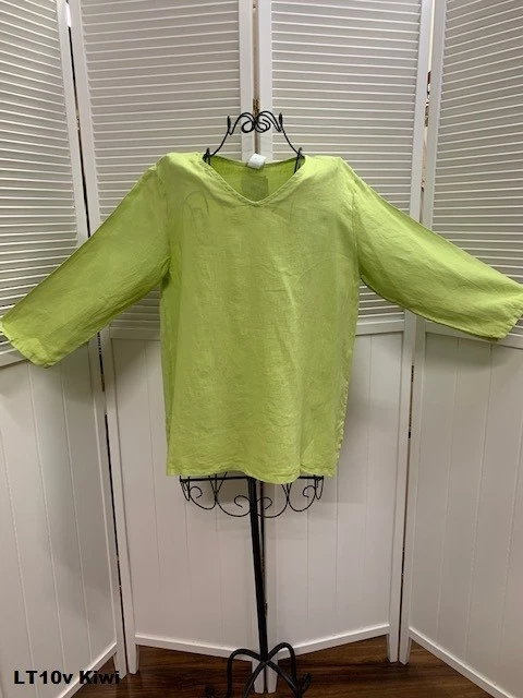 100% Linen V-Neck 3/4 Sleeve Top